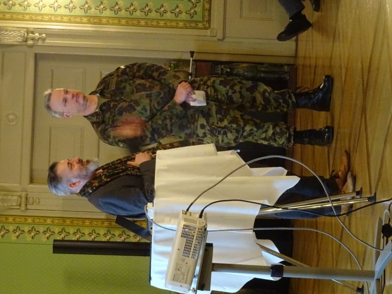 Aus der Welt kehrt Georg Häsler zur Schweiz zurück. Die gefährlichste Möglichkeit wäre das Ende der regelbasierten Ordnung. Darüber gibt es in der Planung bis 2030 drei Szenarie. Auf der Zeitachse für die Schweiz wäre die günstigste Entwicklung die Stagnation, was dem Bundesrat aus finanzpolitischen Gründen natürlich gelegen käme, weil dann die Nachrüstung der Armee weniger dringlich ist. Im Szenario Konfrontation setzte die Landesregierung auf die Kooperation mit den militärischen Nachbarn. Das bedeutete aber nicht, dass wir uns einfach an einen stärkeren Partner anlehnen können. In eine militärische Kooperation müssen wir etwas einbringen, doch bedauerlicherweise haben wir gegenwärtig weniger Möglichkeiten, als nötig wären. Das gefährlichste Szenario ist die Eskalation, ein Zerfall der EU, eine Erosion Europas. Das muss uns sehr zu denken geben. Die Armee die wir haben, muss in der Lage sein, das Land zu verteidigen, inklusive operatives Vorgelände. Der Referent zählt die Fähigkeiten auf, die leichtsinnig aufgegeben worden sind: die Festungsminenwerfer, überhaupt die Geländeverstärkungen. Wir haben keine Luftverteidigung. Die Patriots sind bestellt, kommen aber später, weil die Schweiz auf ihrer Neutralität beharrt und die Ukraine nicht unterstützt.